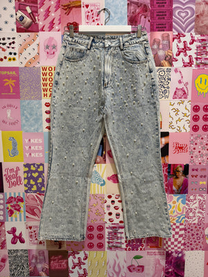 Pearl Embellished Light-wash Denim Jeans