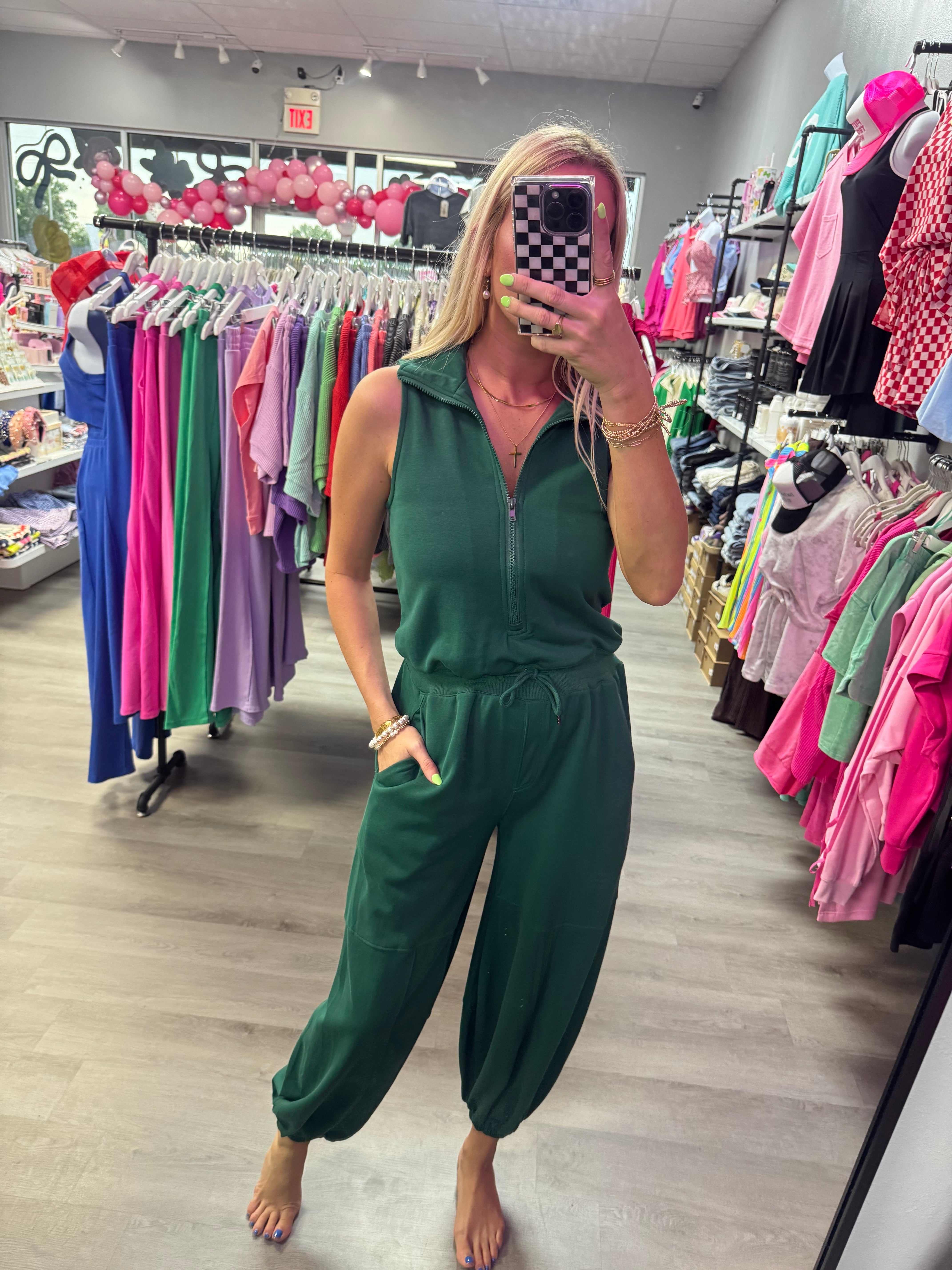 Hunter Green Zip Jumpsuit