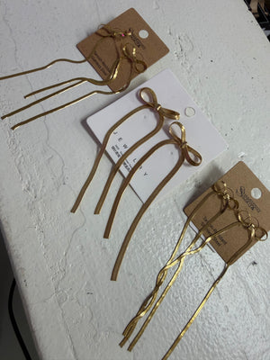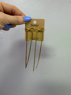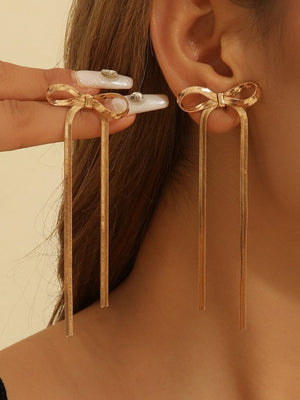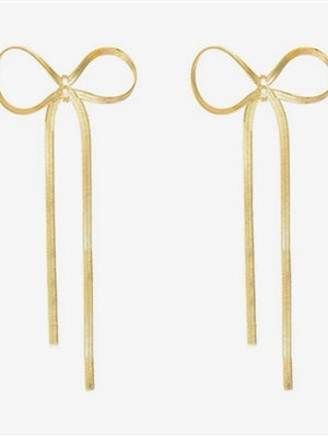 Skinny Non-Tarnish Stainless Steel Long Bow Earrings