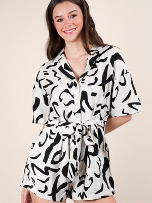 Away We Go Cream and Black Romper