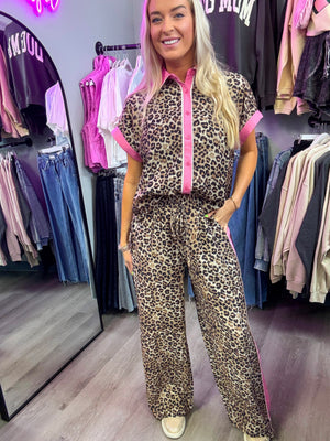 Wild Thing Leopard and Pink Button Down Set