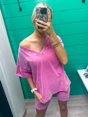 Here We Go - V Neck and Biker Short Set Pink