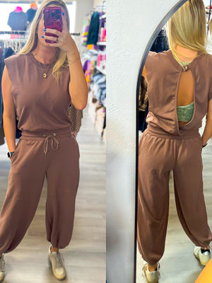 Chocolate Mineral Washed Open Back Jumpsuit