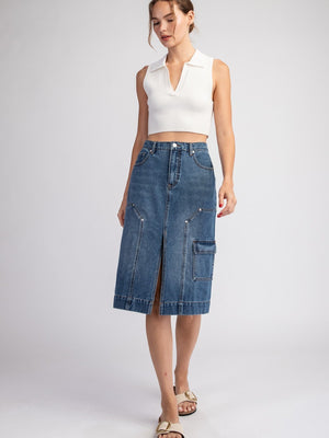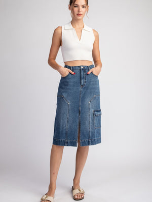 Denim Split Midi Skirt
