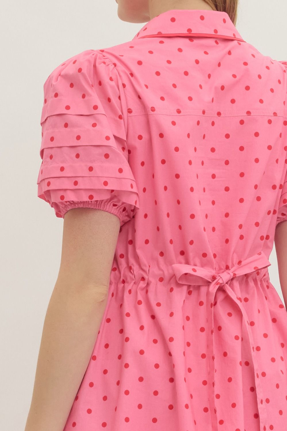 Timeless, feminine, and effortlessly put-together — The Polished Polka Mini Dress is the definition of classic charm with a modern twist. Designed in crisp 100% cotton, this lightweight woven mini features a flattering V-neckline with collar detail, layered puff sleeves, and an elasticated back waist with a self-tie for the perfect adjustable fit.