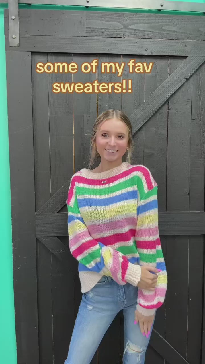 Brighten up your day with our playful and relaxed Brighten The Day Striped Sweater. Made with soft and breathable knit fabric, this sweater features multicolor stripes for a fun and quirky look. The slightly oversized fit allows for versatile styling options, making it the perfect addition to your wardrobe. Wear it with jeans, shorts, or even over a dress for a unique and effortless style.