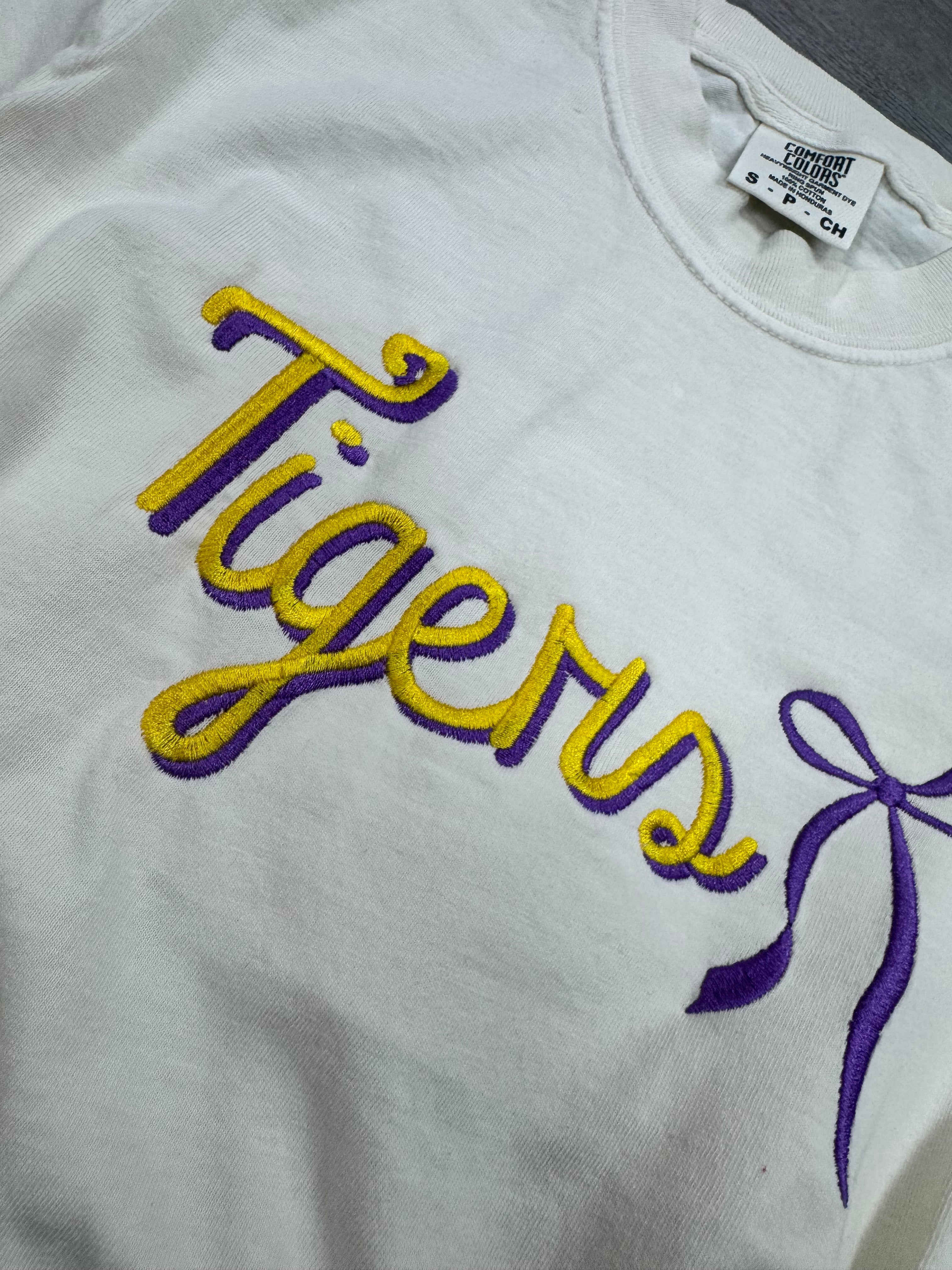 Tiger Embroidery Bow Tee Ivory