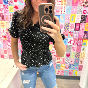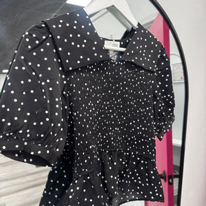 Black and White Polka Dot Collar Top