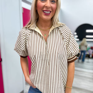 Stripe Zip Top Carmel