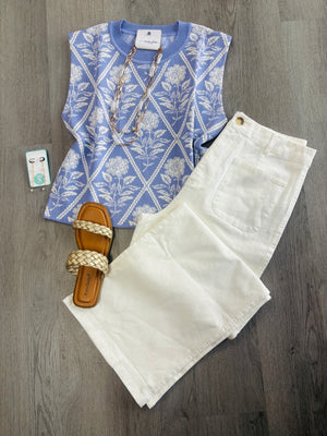 The Garden Grid Knit Top Light Blue