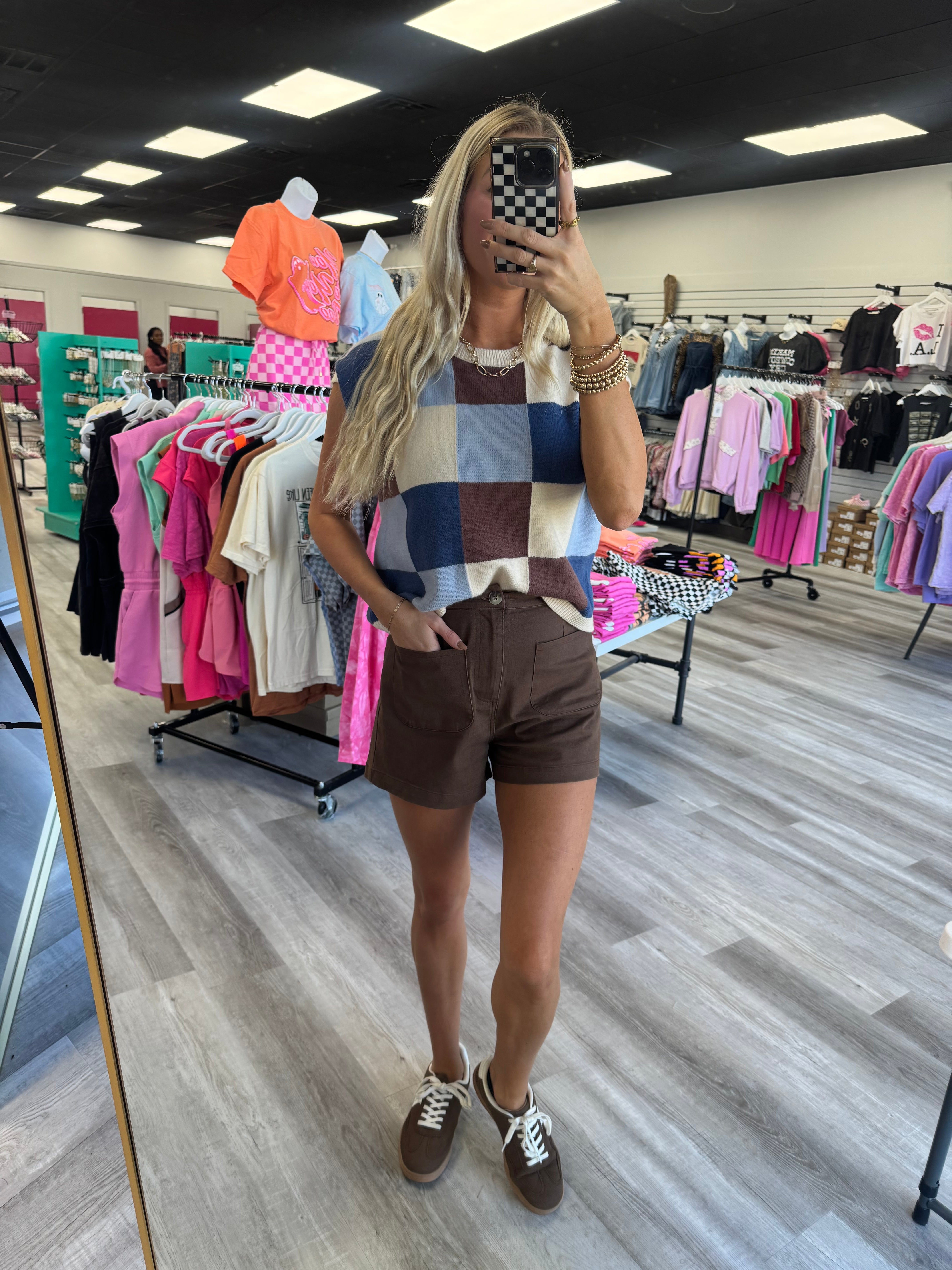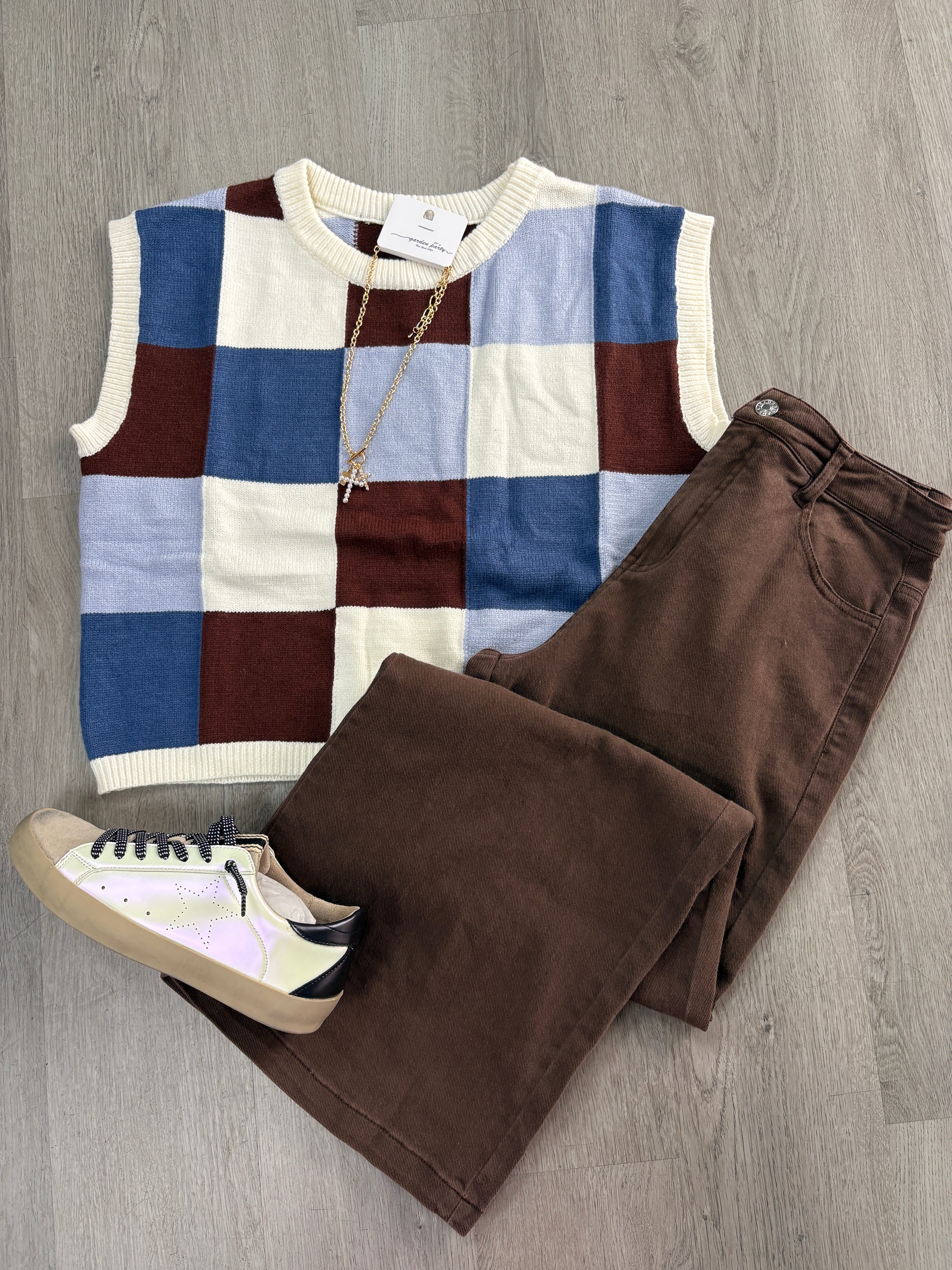 Check It Out Checkered Sweater | Dark Blue Brown Mix