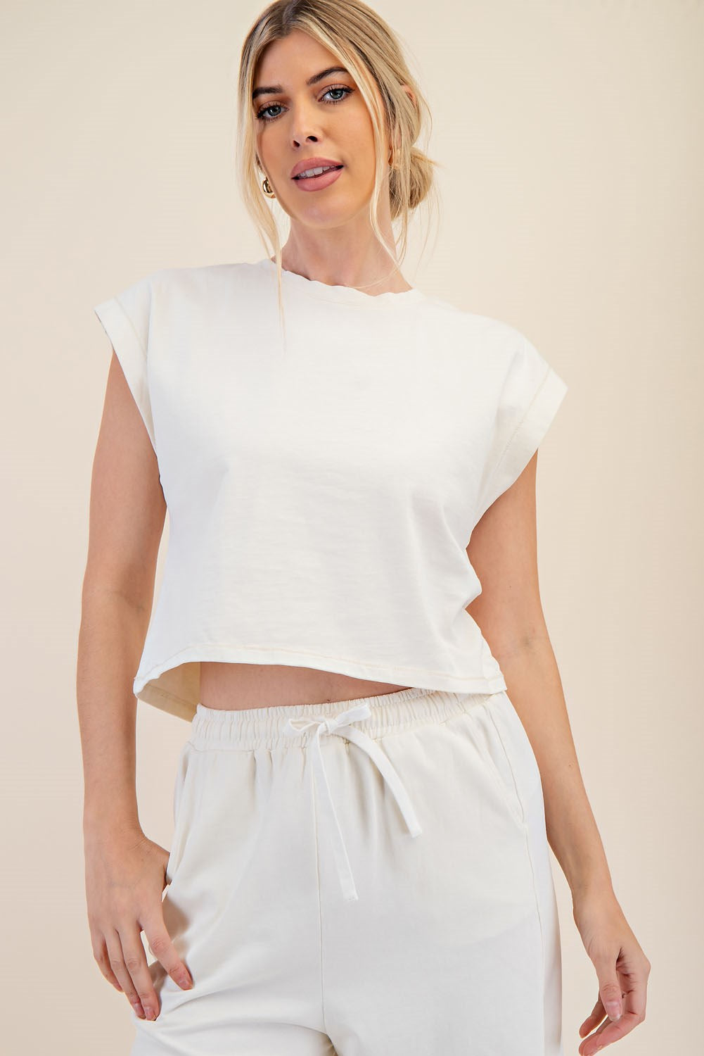 Cream Round Neck Crop