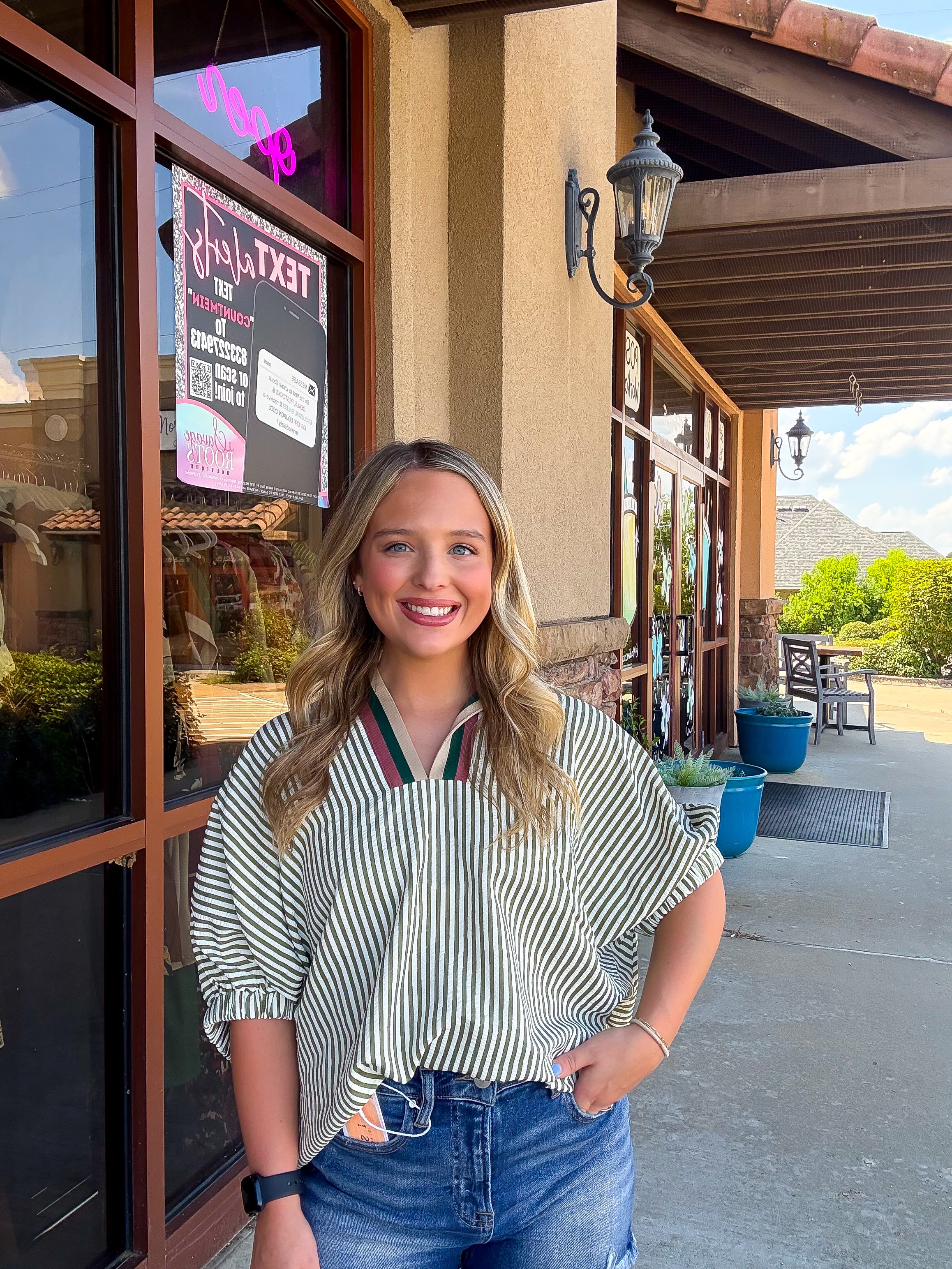 Get ready to make a statement in our In The Breeze Top! With a unique striped high neck design and elasticated sleeve band, this top stands out from the rest. The accented multicolor rib band and split neck add a pop of color, while the lightweight and non-sheer fabric keeps you comfortable all day.