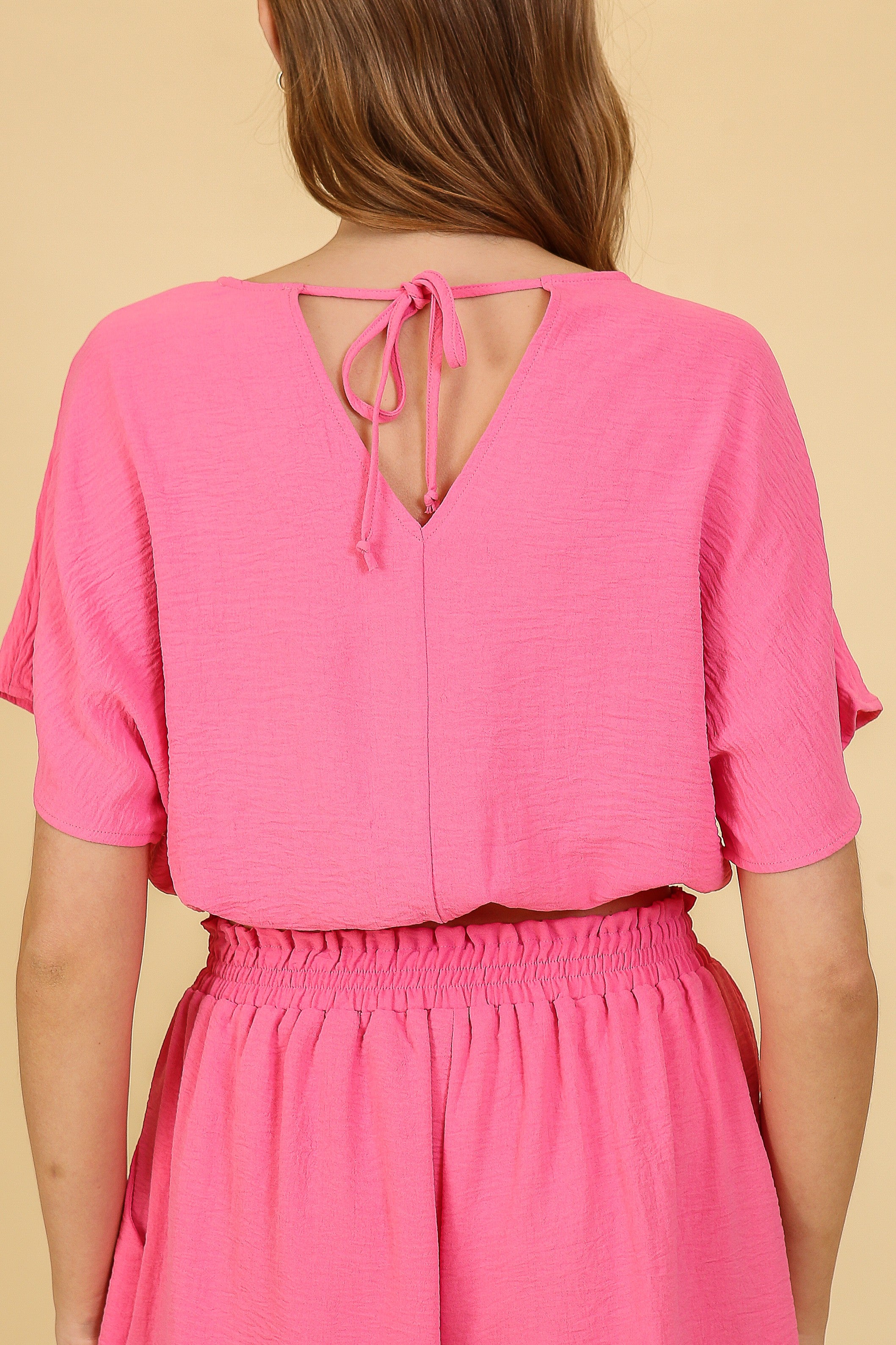 Add a touch of breezy elegance to your wardrobe with this Flowy Short Sleeve Boat Neck Airflow Crop Top.
