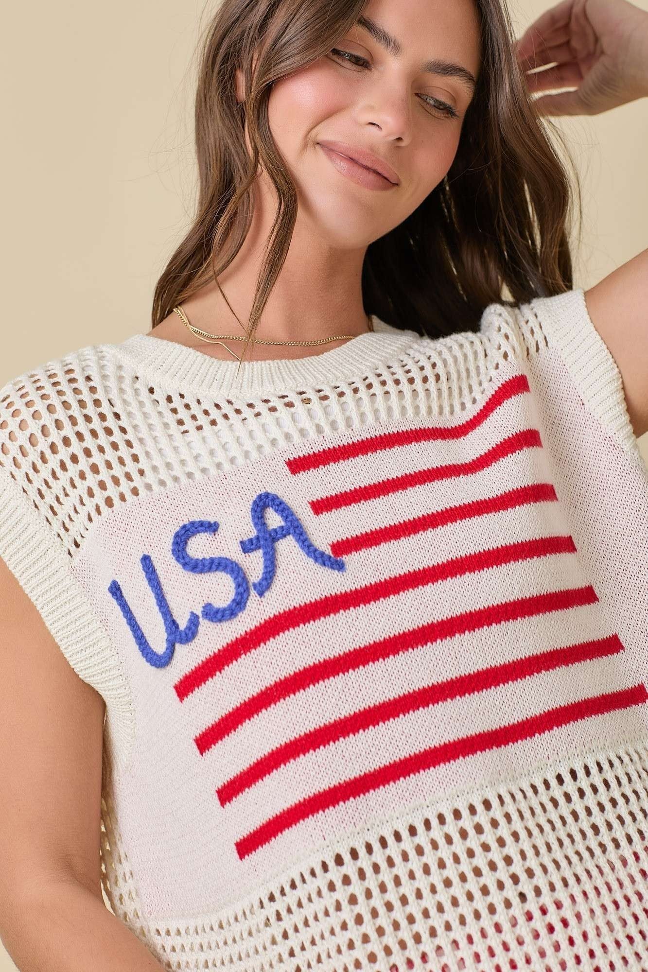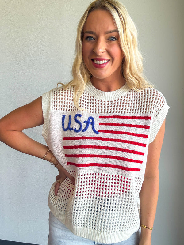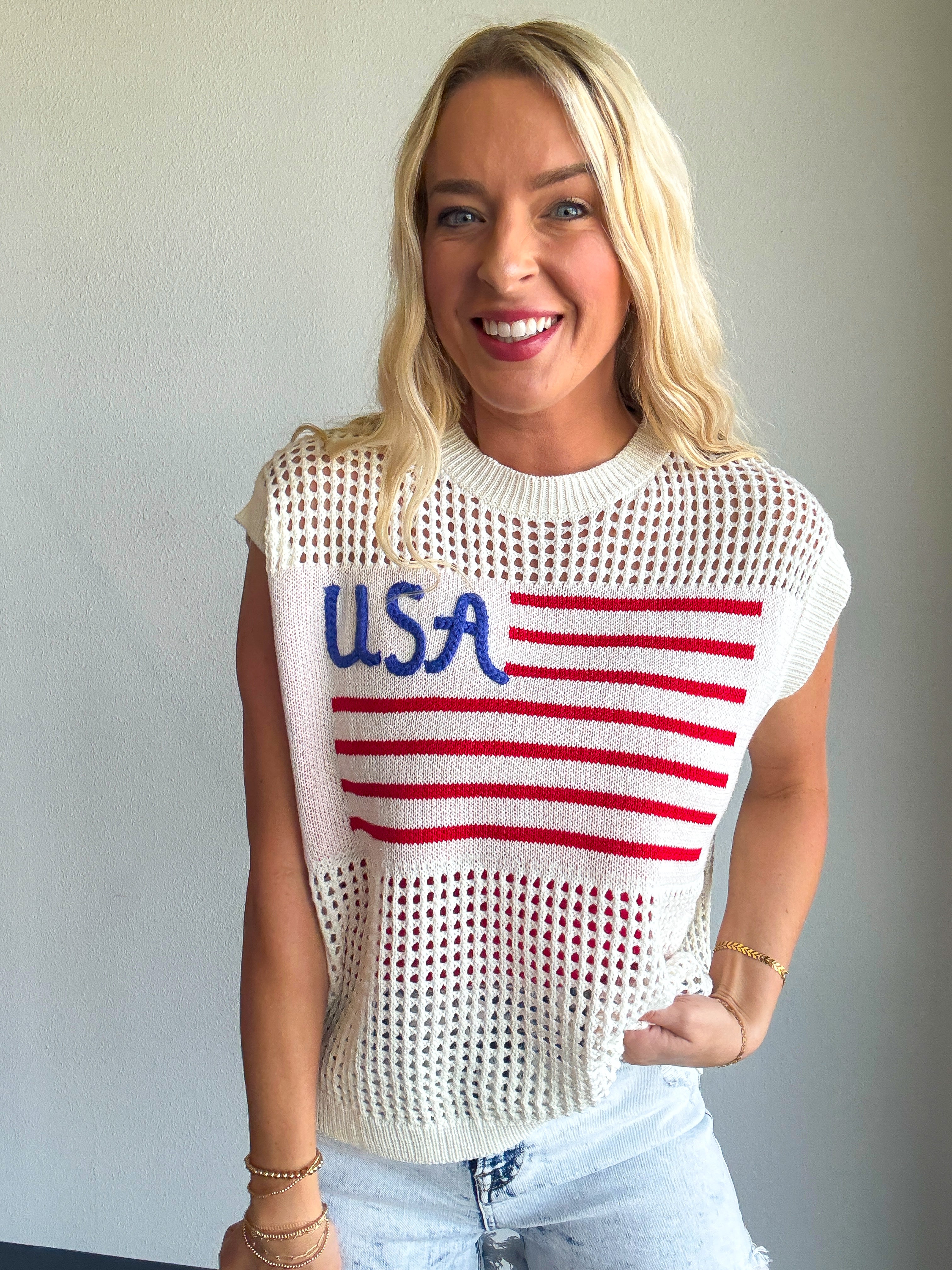 4th Of July Usa Flag Crochet Sleeveless Top