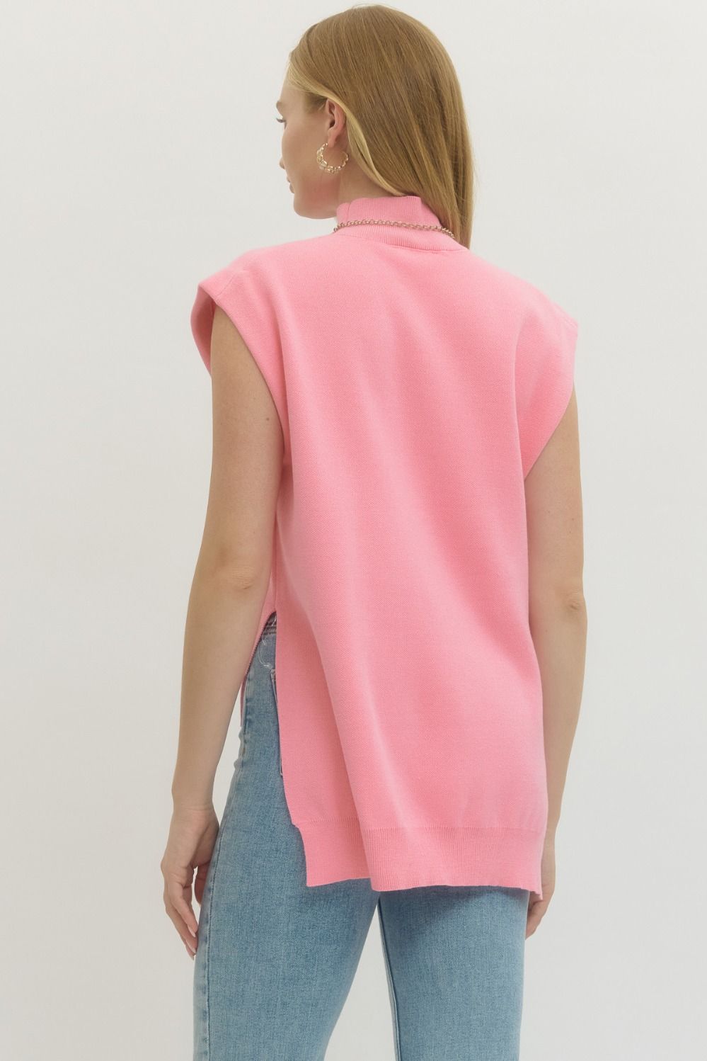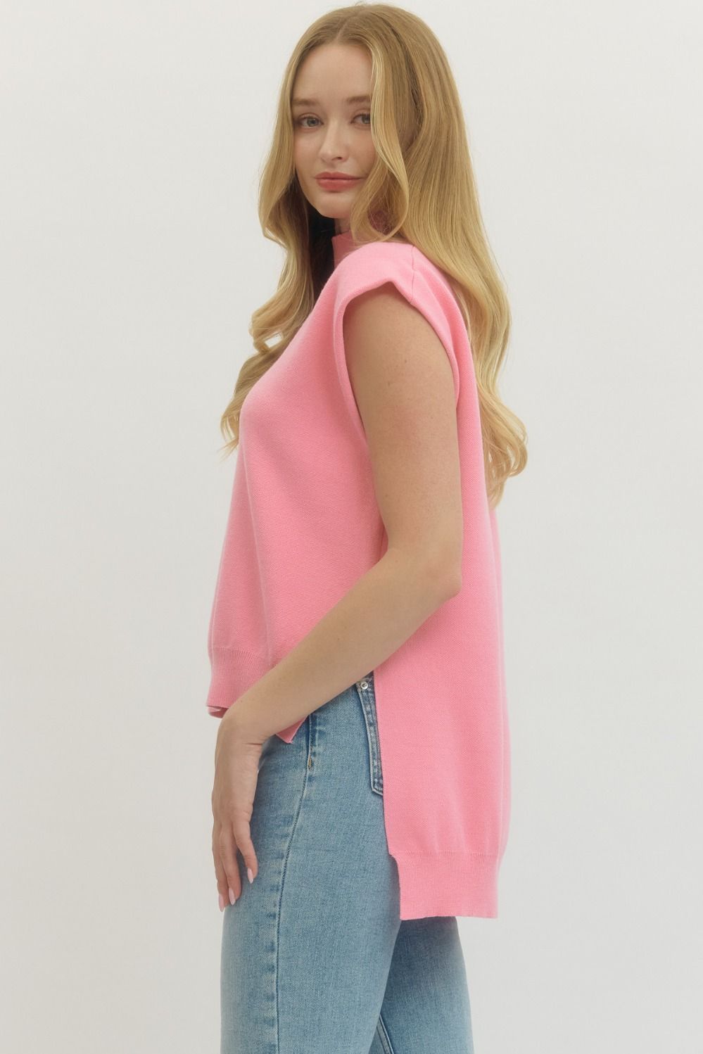 This top is the definition of effortless chic. Designed with a soft knit feel and subtle structure, it gives you that polished look without feeling stiff or uncomfortable. The mock neckline adds a touch of elevation, while the cap-style sleeves create a flattering, modern silhouette.