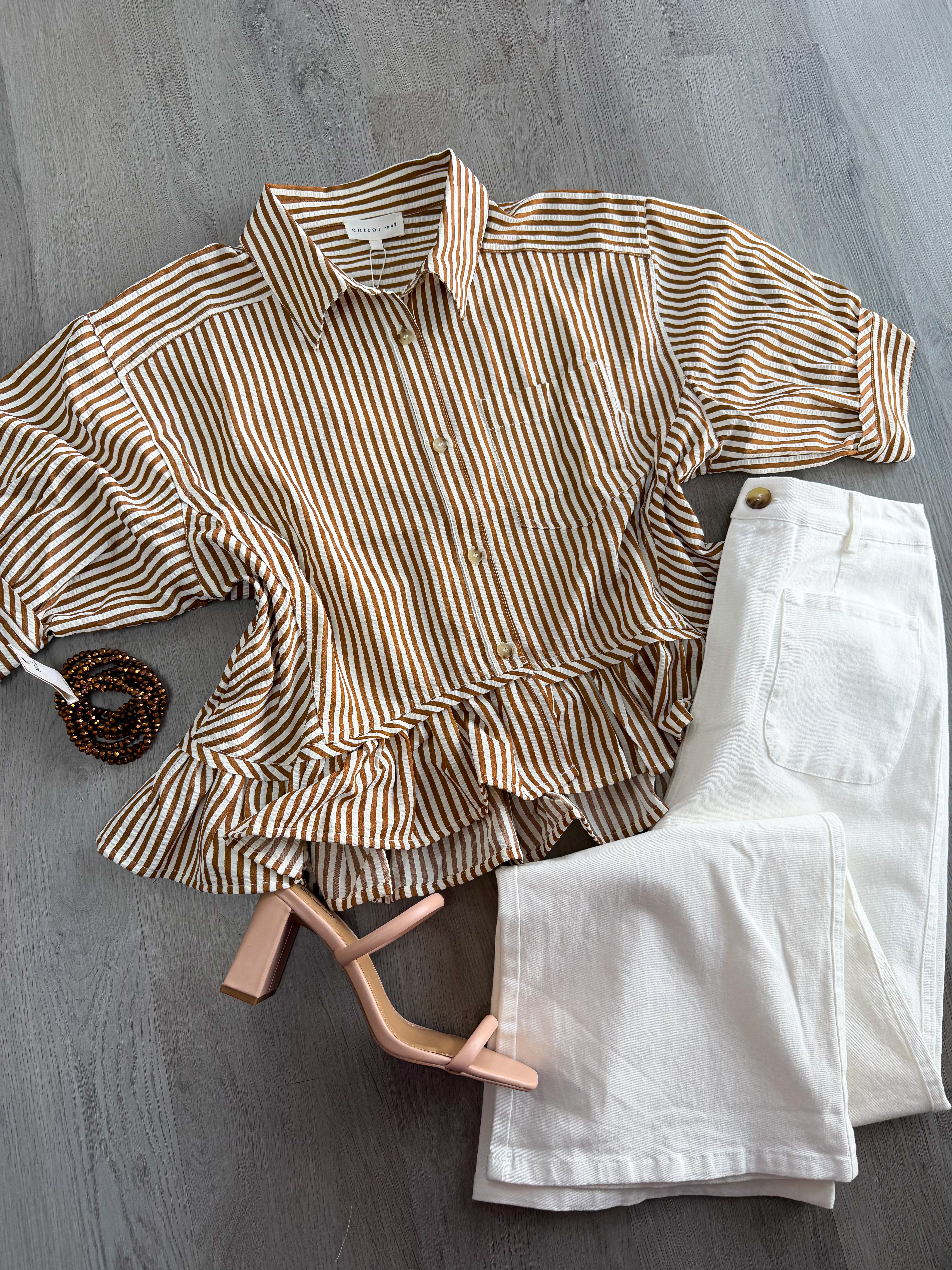 Brown Ruffle Stripe Top