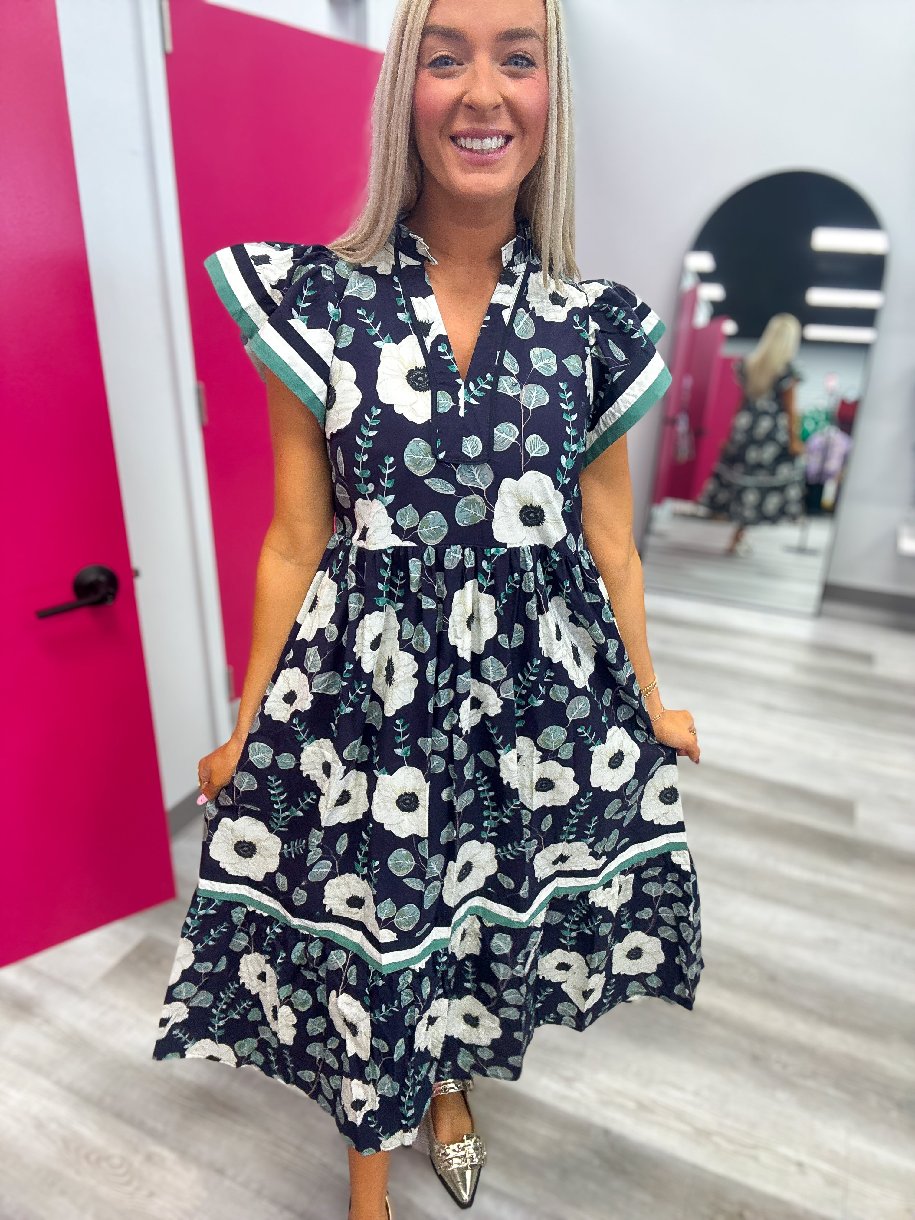 Elevate your wardrobe with this stunning Floral Navy Midi dress.. a versatile piece that transitions seamlessly through seasons. The rich navy and blue palette brings timeless elegance to any occasion, whether you're embracing spring's warmth or layering it over a crisp denim jacket for cooler months. The flowing midi silhouette flatters every frame while offering the comfort and sophistication you deserve. From casual outings to special events, this dress adapts to your lifestyle with effortless style. Make it your go-to piece for looking polished and put-together, no matter the season.
