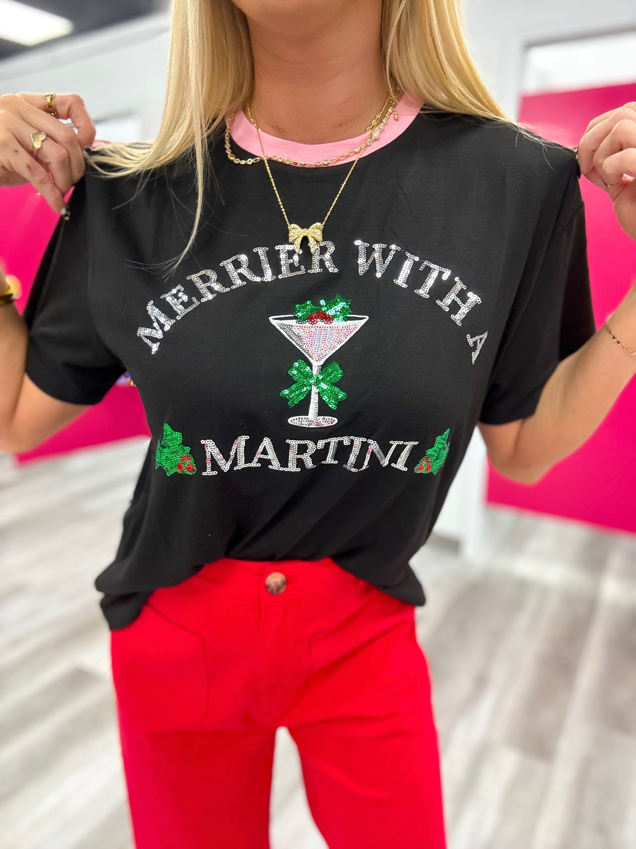 Celebrate the holiday season with this fun and charming oversized tee featuring sparkling sequin embroidery. The black fabric is accented by a contrasting pink collar for a stylish finish. Refresh your wardrobe with this playful and fashionable holiday essential!
