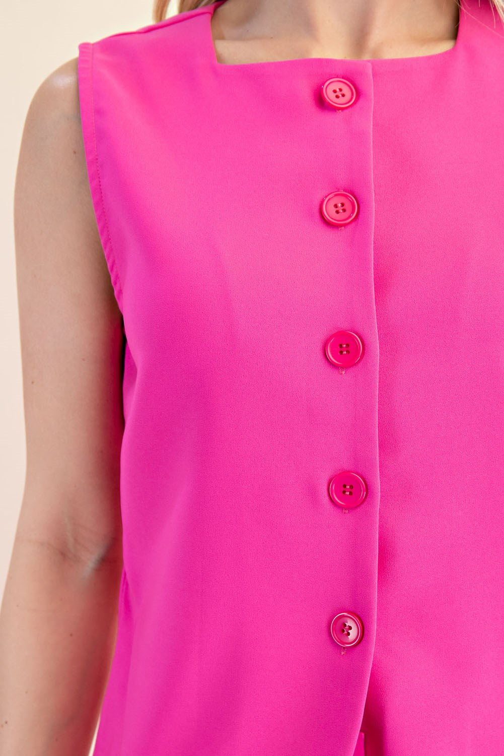 Neon Pink Button Vest Top