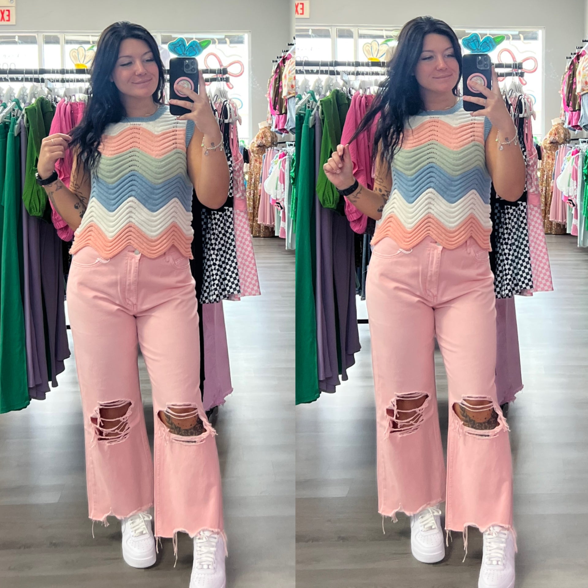 Pastel Neutral Mutli Color Waive Pointelle Sweater Tank