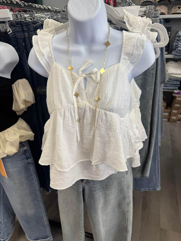 Ruffle Front Tie Tank