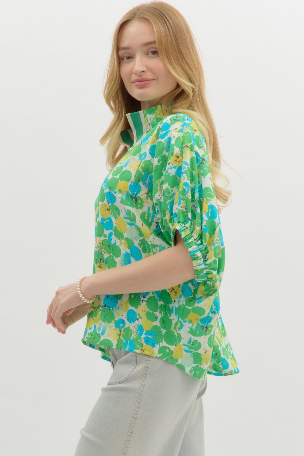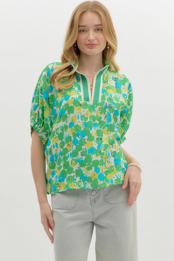 Spring Splash Popover Blouse - Green Yellow Blue