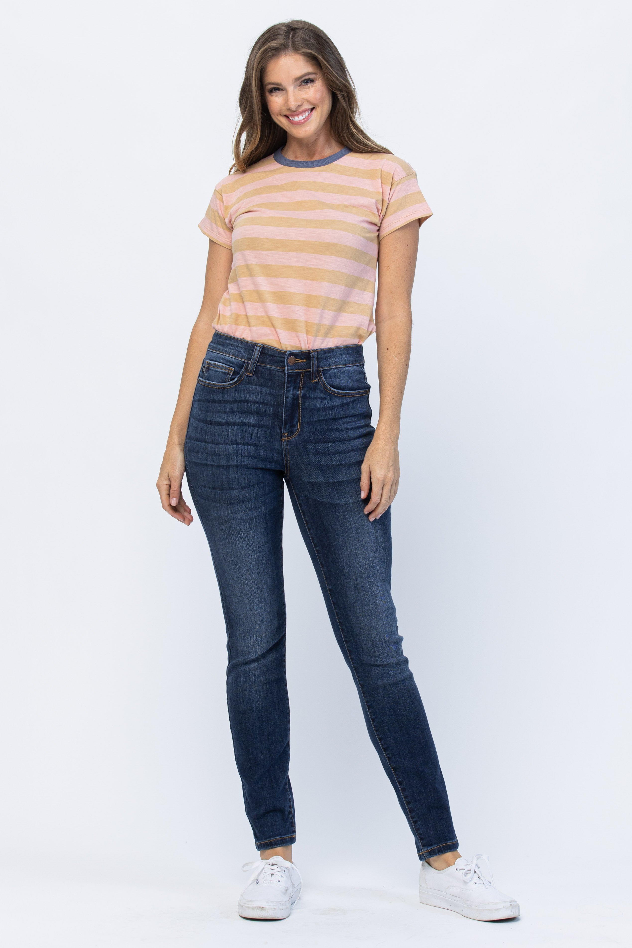 The Emma is the perfect pair of jeans for days when you want to look cool but don't want to sacrifice your comfort. With a dark wash, high rise, and relaxed fit these perfect JUDY BLUE jeans are sure to turn some heads! Plus, there's no distressing on these making them perfect for any day!