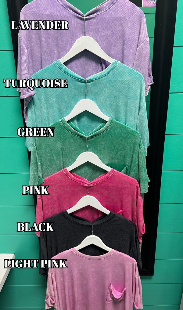 Washed Ribbed Cuffed Short Sleeve Round Neck Top